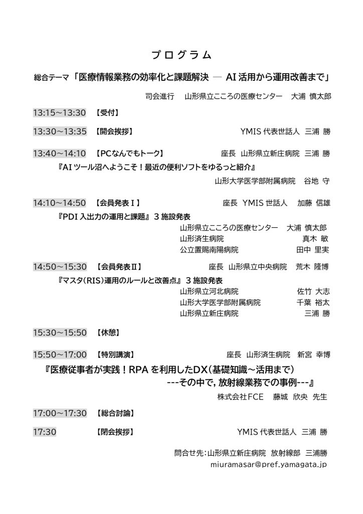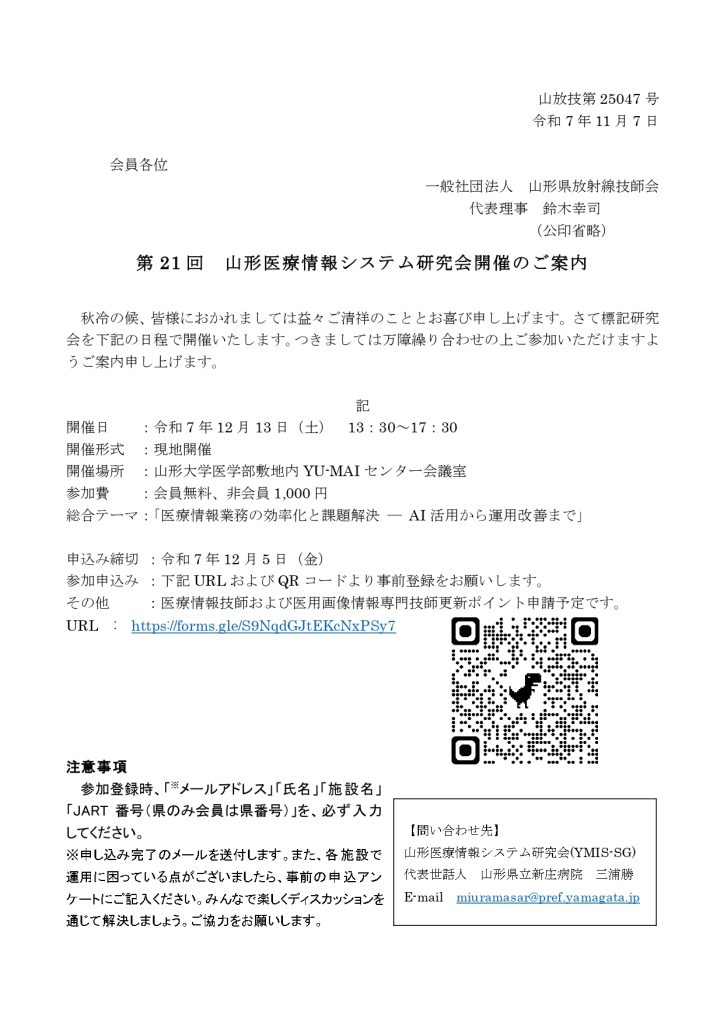 問い合わせ先:山形医療情報システム研究会(YMIS-SG)