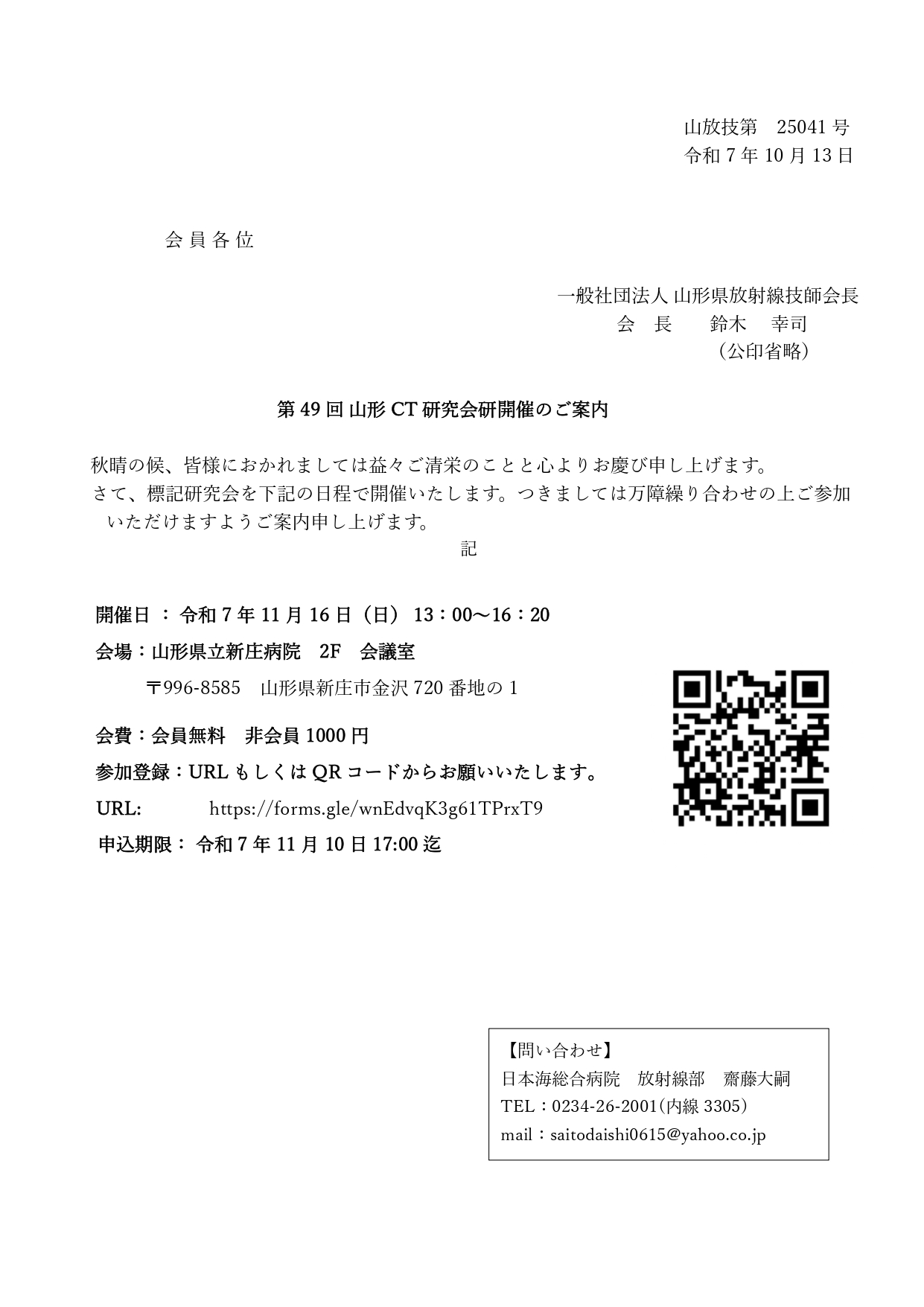 2025年度 山形県放射線技師会秋季セミナーのご案内